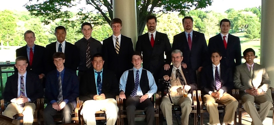 Troop 55 recently hosted a dinner for Senior scouts, former eagle scouts and former scoutmasters. In the photo, from back left to right are: Bob MacKichan (scoutmaster ’99 – ’08), Gary Pan (scoutmaster ’09 – current), Drew Smith, Sam Dyment, Adam Cook, Steve Cook, James Pungello, Clayton Barber, Brad Hodge, Garrett Pan, Grant Smith, Chuck Cook (scoutmaster ’80 – ’96), John Studabaker & Neil Patil.