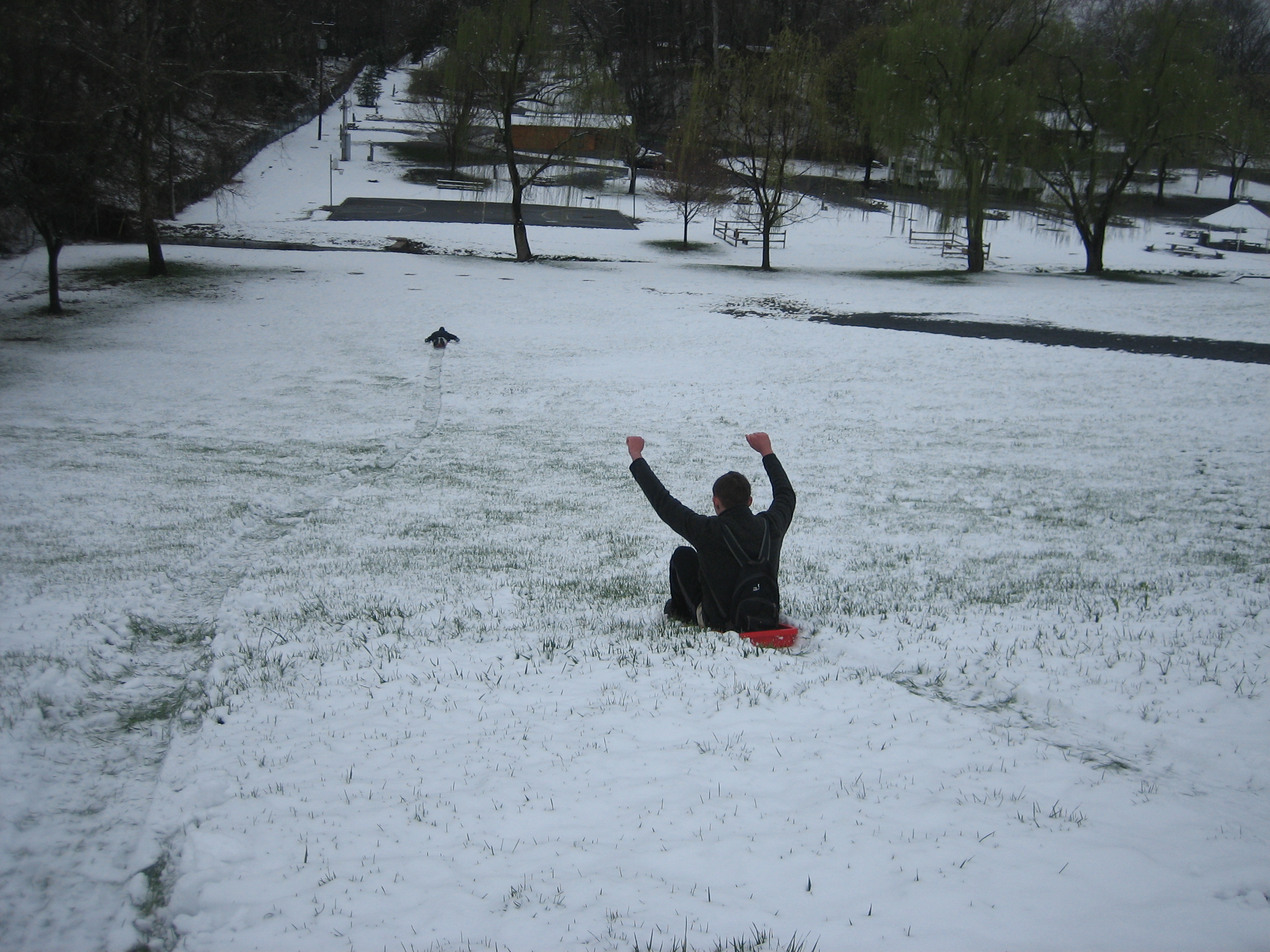 The Adult leaders brought some sleds and many scouts spent several hours sledding down the hillside toward the creek. It was a lot of fun.