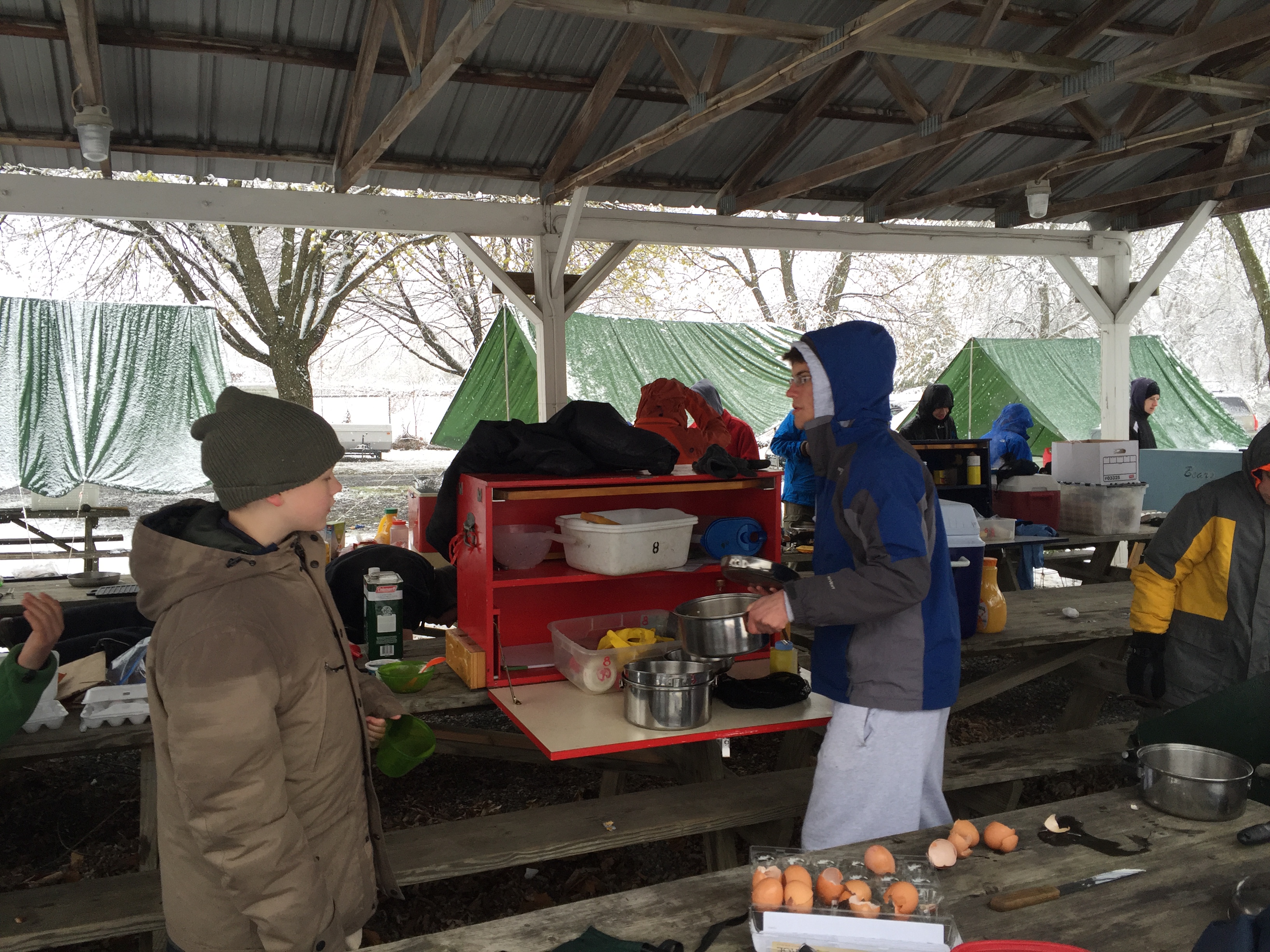 We got up and put on warm clothes and made breakfast and practiced scout skills.