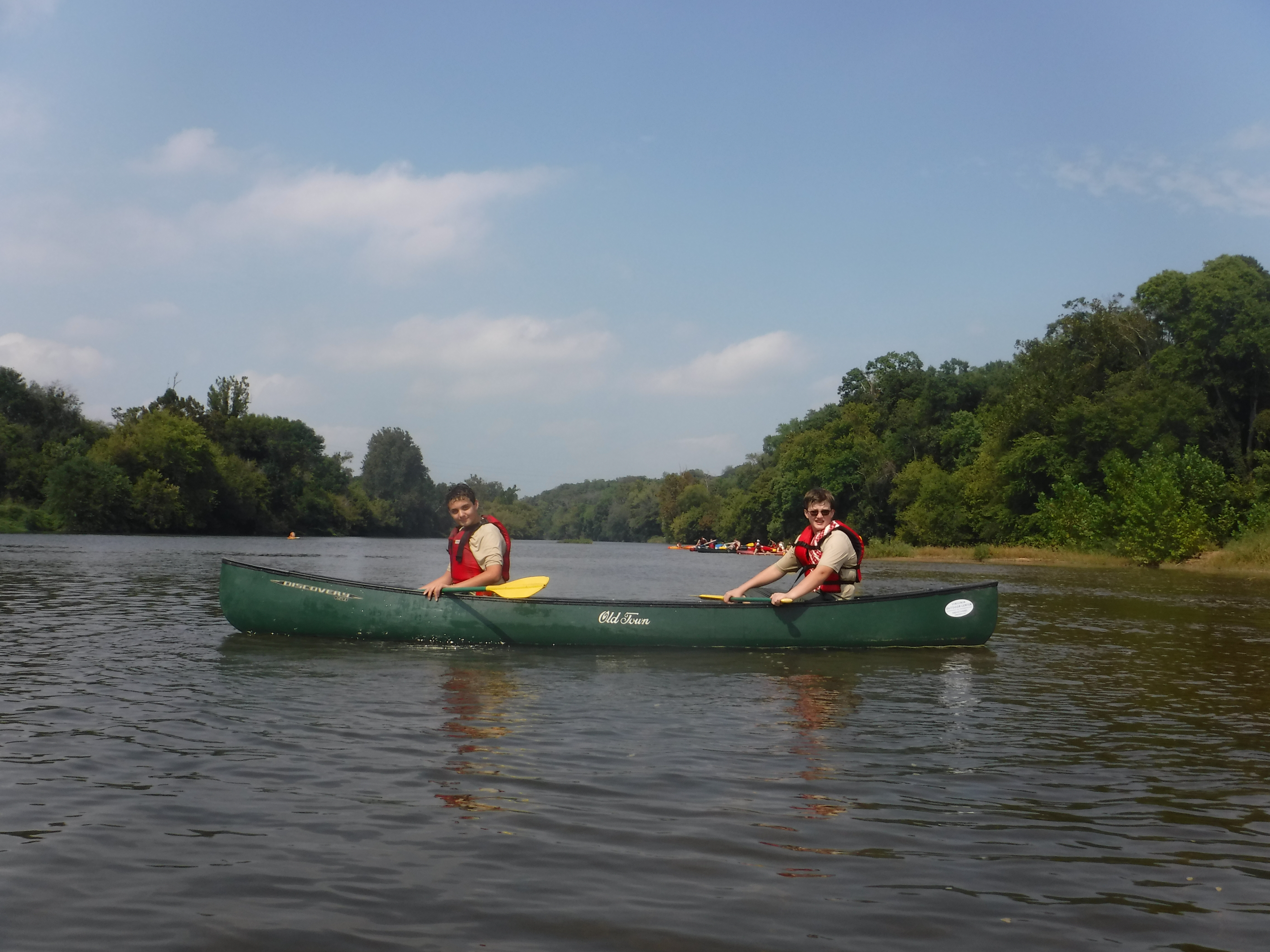 Tips for canoeing: be strong. A canoe usually weighs 40+ pounds, and the fact that it is being carried from the bow and the stern just makes it feel even heavier. My buddy and I carried the canoes accross a field and down a hill, and there would’ve been a “canoe-off break” every few seconds if someone else didn’t help us. Also, canoes move slowly compared to kayaks. So you’re going to need to be strong if you want a decent pace, or move in general.